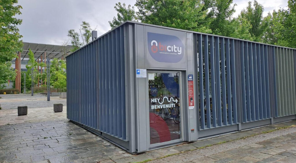 L’infrastruttura è collocata a pochi passi dalla stazione ferroviaria ed è stata progettata per offrire un ricovero chiuso, coperto e protetto per biciclette e monopattini. Realizzata in acciaio e vetro, in armonia con l’architettura del nosocomio, può ospitare fino a 90 biciclette su due piani tramite sistema pneumatico e fino a 7 monopattini.